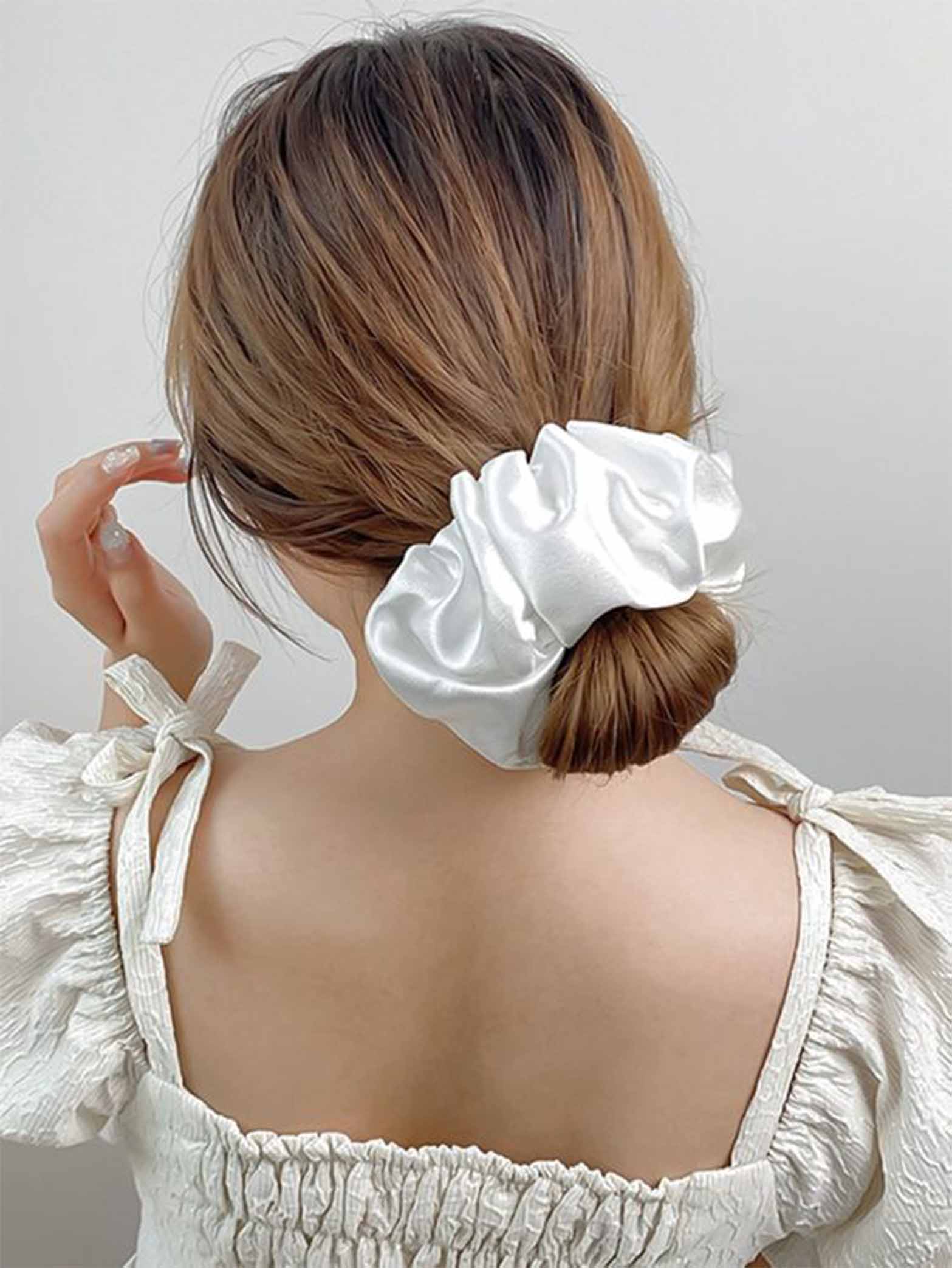 Soft on hair & wrist These hair ties are made using silk-like pure satin fabric and comfortable elastic. Smooth and easy to slide out and thus prevents hair breakage and cares for your hair. You can comfortably wear it on your wrist too.