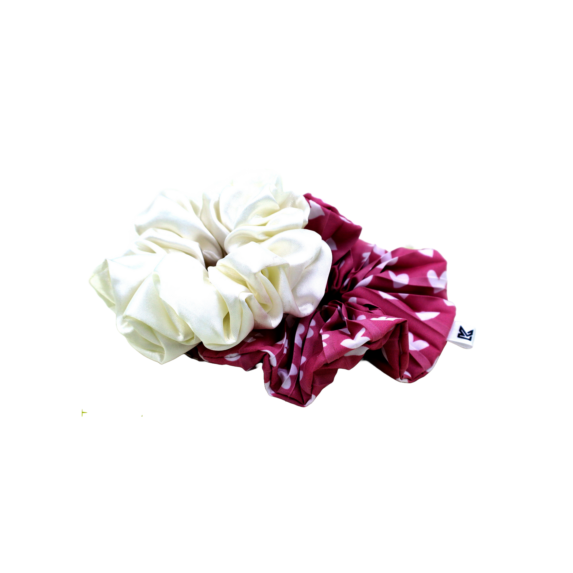Classics Pink & White Heart Printed with pleated Satin Scrunchies (Xl Size) - Set of 2