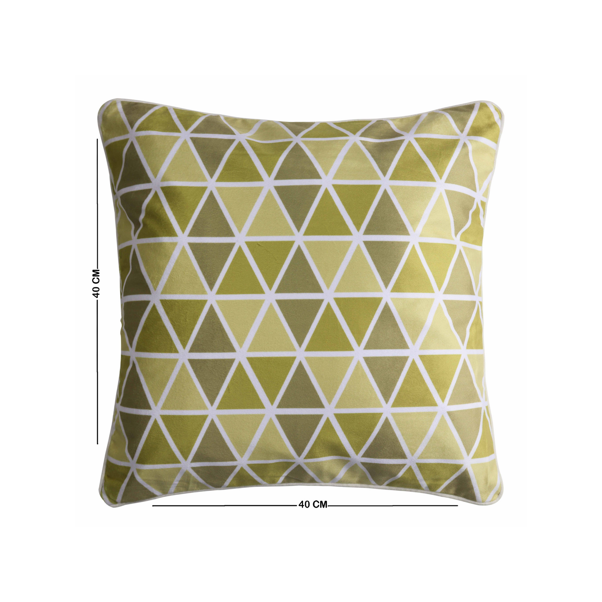 Decorative Cushion Cover for Sofa & Couch | Modern Geometric Triangle Print Throw Pillow Cover | Soft Poly Velvet Front & Cotton Back with YKK Zipper | Green | 16x16 Inch