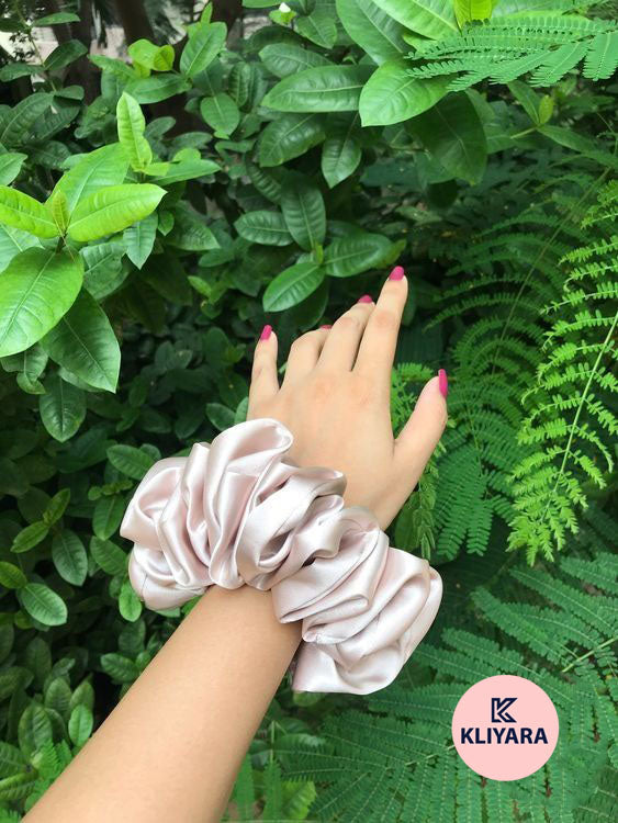 Soft on hair & wrist These hair ties are made using silk-like pure satin fabric and comfortable elastic. Smooth and easy to slide out and thus prevents hair breakage and cares for your hair. You can comfortably wear it on your wrist too.